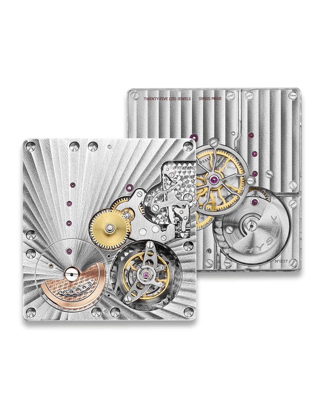 The movement has been specially made for the Kilada collection and presented in two version. One in titanium case limited to 30 pieces and a second one in a 18k Rose Gold case with its red-hued sapphire dial subtly underlines the mechanical silhouettes of its movement ( in a limited edition of 8 pieces ).
