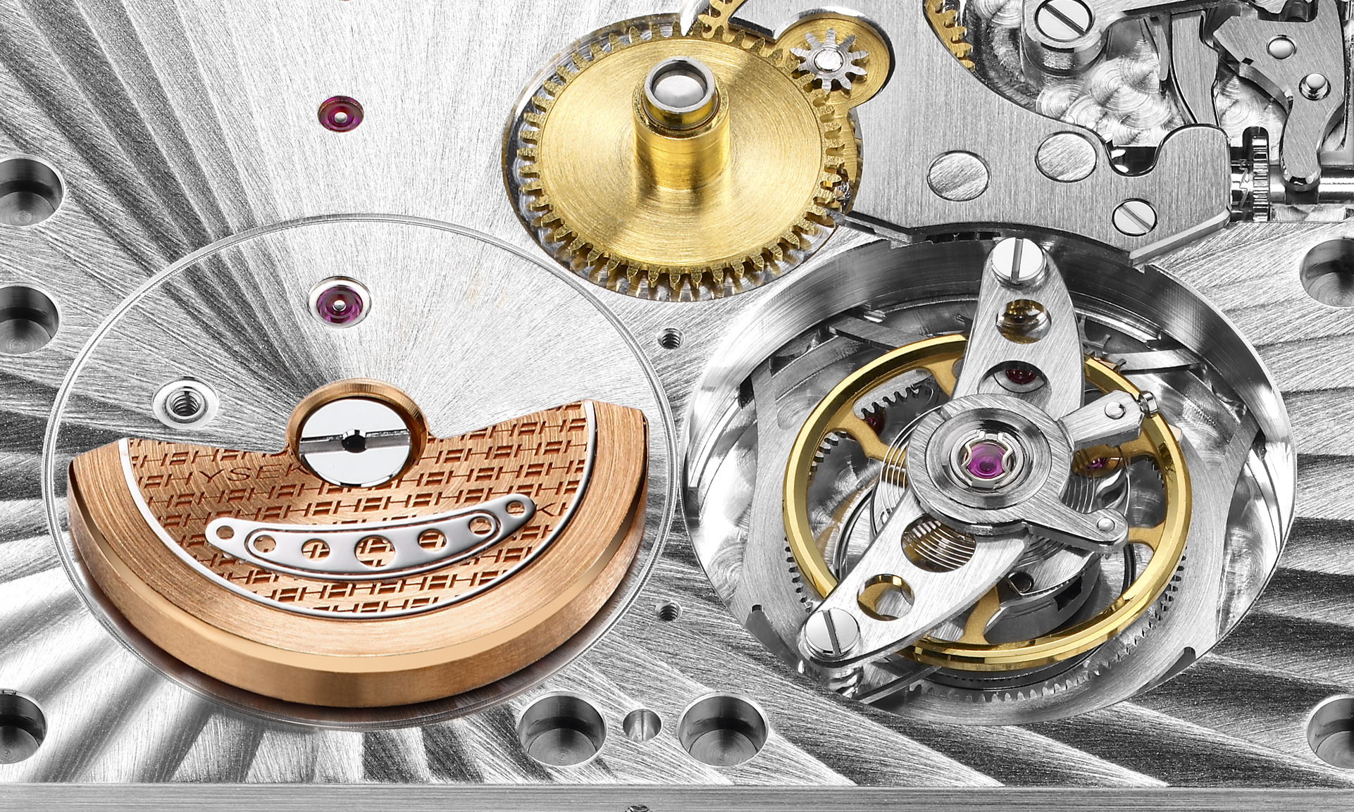 This in-house flying tourbillon movement features not one but two micro-rotors; the one located at the rear is made of platinum for a high autonomy while the one visible on the dial side, in 22K rose gold, will hold the attention of fans still looking for creations with a strong identity.