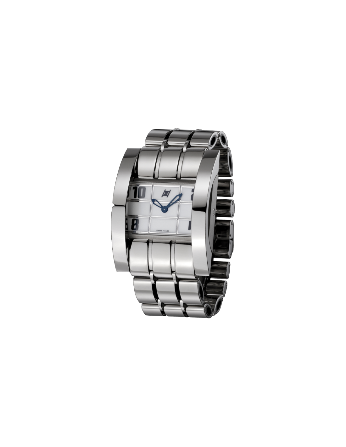 Offering a timeless elegance, this timepiece is a true homage to feminity. The combination of the unique suspended and curved case, extended by a strap perfectly fitting the wrist provides a pure and avant-garde character.