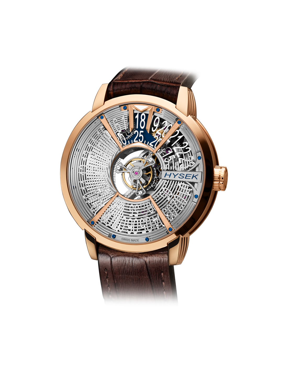 The IO line is intended for a more classical customer, sensitive to the very distinctive design which embodies the HYSEK brand. This aesthetically perfect timepiece with rounded curves is available in different version as Jumping Hours, Moon phase, Power Reserve…