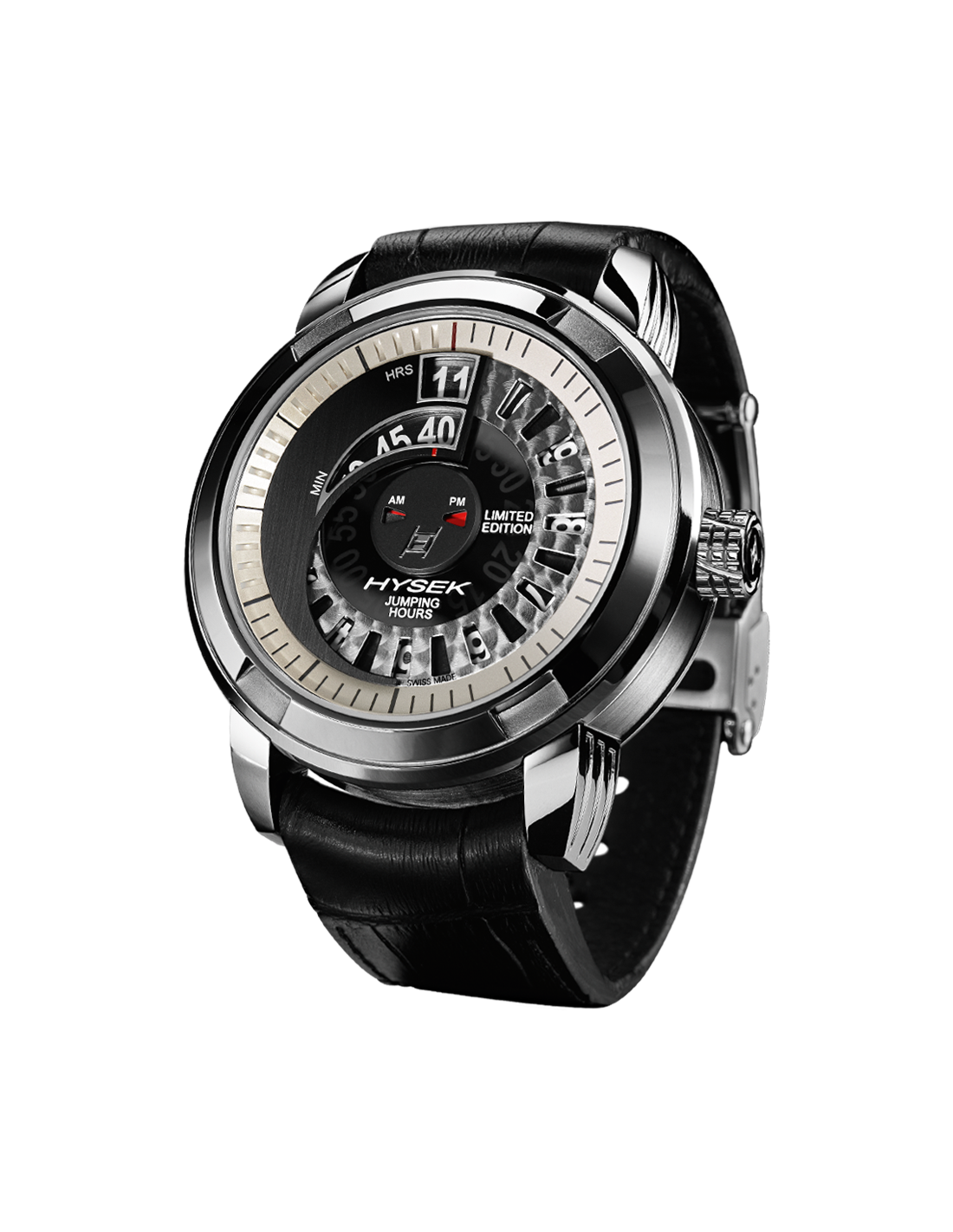 The IO line is intended for a more classical customer, sensitive to the very distinctive design which embodies the HYSEK brand. This aesthetically perfect timepiece with rounded curves is available in different version as Jumping Hours,