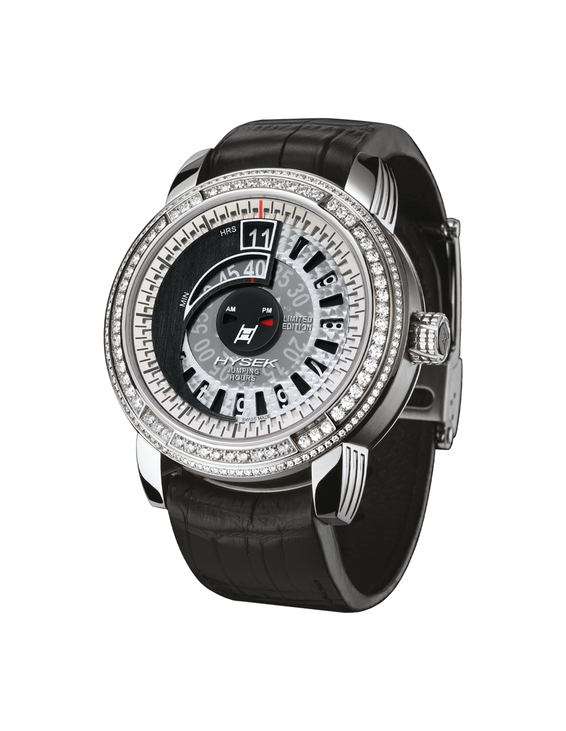 The IO line is intended for a more classical customer, sensitive to the very distinctive design which embodies the HYSEK brand. This aesthetically perfect timepiece with rounded curves is available in different version as Jumping Hours,