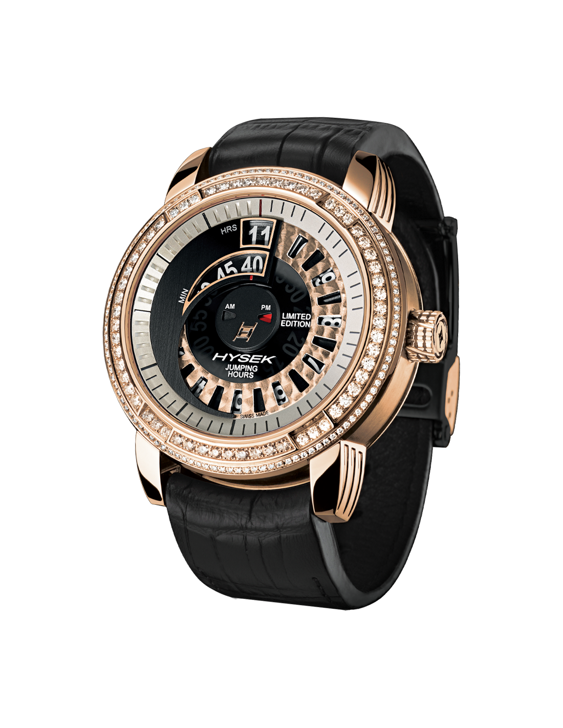 The IO line is intended for a more classical customer, sensitive to the very distinctive design which embodies the HYSEK brand. This aesthetically perfect timepiece with rounded curves is available in different version as Jumping Hours,