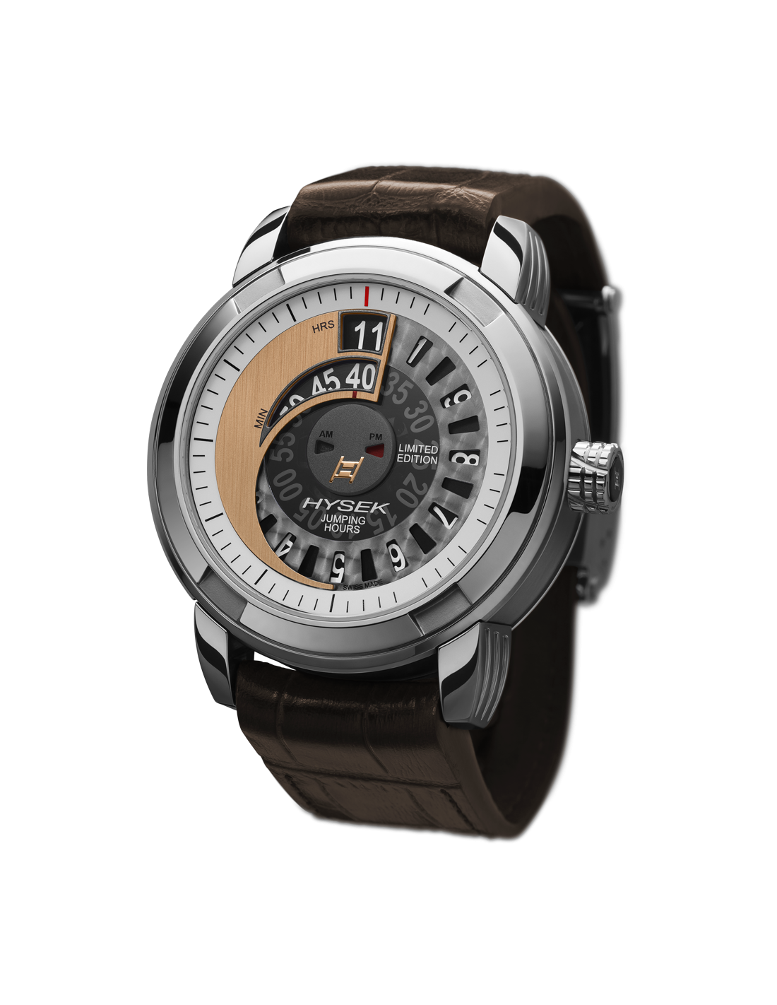 The IO line is intended for a more classical customer, sensitive to the very distinctive design which embodies the HYSEK brand. This aesthetically perfect timepiece with rounded curves is available in different version as Jumping Hours,
