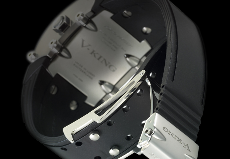 The V-King collection is easily recognizable by the unconventional, eye-catching and contemporary tonneau shape of the case, its imposing profile as well as its elegant and technical curves.