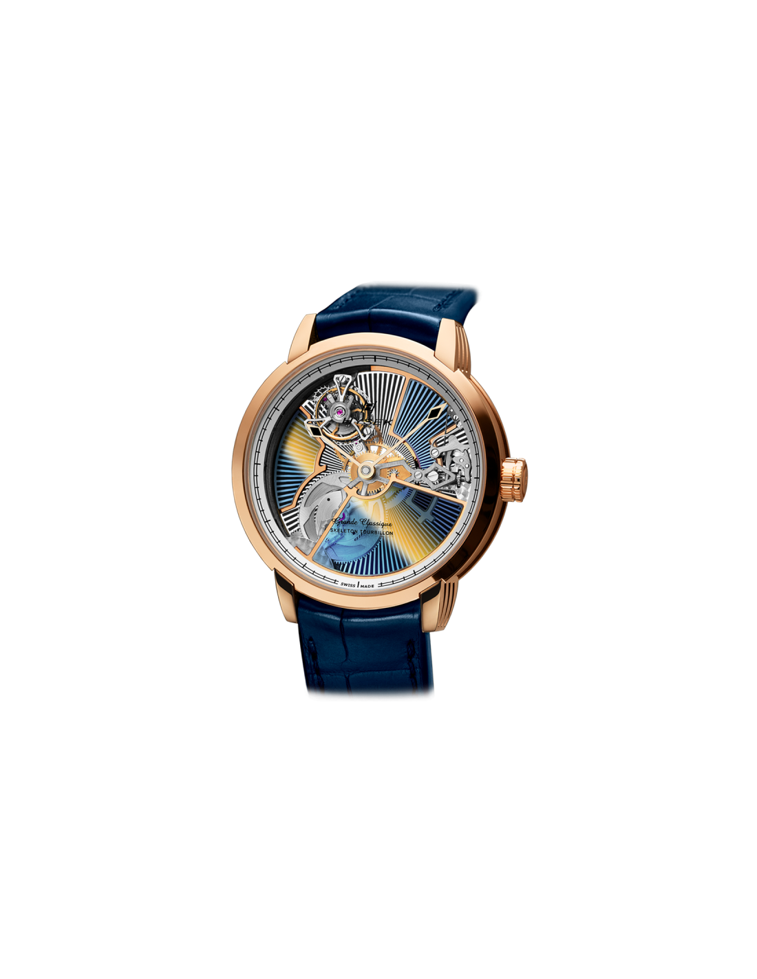 La ligne IO est destinée à un client plus classique, sensible au design très distinctif qui incarne la marque HYSEK. Ce garde-temps esthétiquement parfait avec des courbes arrondies est disponible en différentes versions sous le nom Heures sautantes, Phase de lune, réserve de marche…