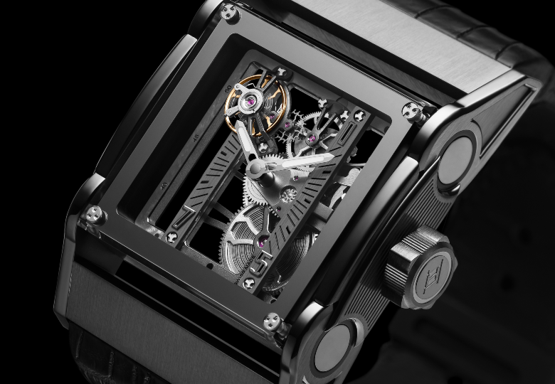 Cette montre Furtif Skeleton de 44 mm vous surprendra par sa légèreté. Elle s’explique par le matériau choisi : le Titane.