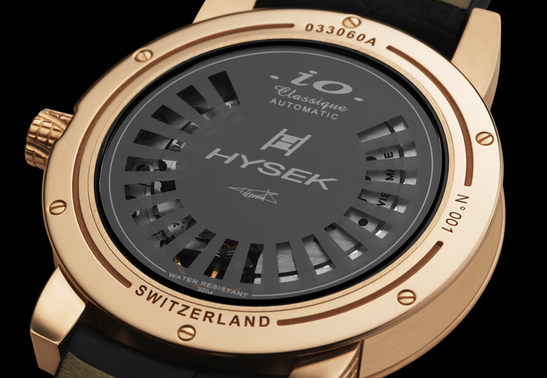 La ligne IO est destinée à un client plus classique, sensible au design très distinctif qui incarne la marque HYSEK. Ce garde-temps esthétiquement parfait avec des courbes arrondies est disponible en différentes versions sous le nom Heures sautantes,