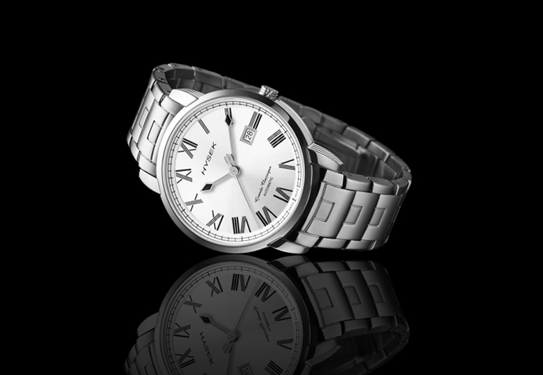 La ligne IO est destinée à un client plus classique, sensible au design très distinctif qui incarne la marque HYSEK. Ce garde-temps esthétiquement parfait avec des courbes arrondies est disponible en différentes versions sous le nom Heures sautantes,